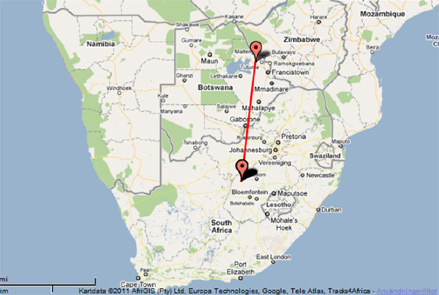 Efter nästan exakt fyra månader i Sydafrika ser det nu ut som att 1173 är på väg norrut igen. 1173 föddes för ett år sedan i hägnet i Fulltofta. Den har vistats i Sydafrika sedan nyår men hade den 29 april tagit sig drygt 50 mil norrut, till Botswana, nära gränsen till Zimbawe.